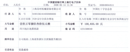 现在,正是我们尽己所能,回馈社会的时刻;我司积极履行对社会的责任,做一名有责任心的团体公民,参与社会公益事业,向四川汶川地震灾区伸出援助之手。