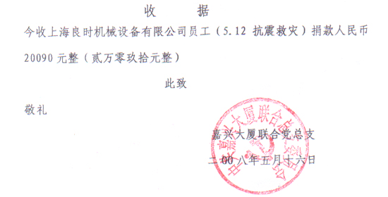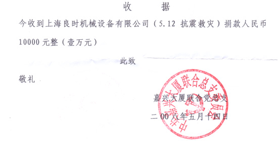 公司于5月14日下午再次通过嘉兴大厦联合党总支向四川汶川地震灾区捐款壹万元