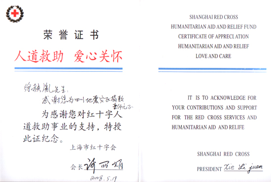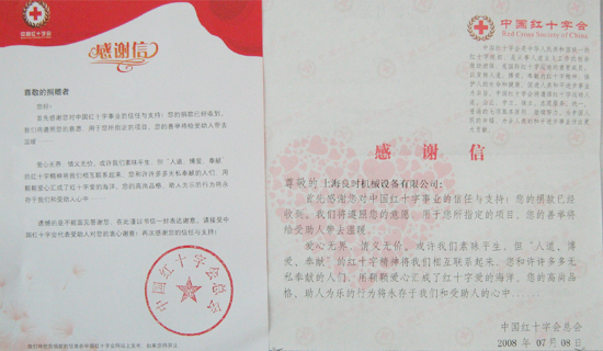 我司积极快速响应政府和社会的号召,并继续公司“环保节能活动,社会公益活动”的赈灾项目,通过中国红十字会向受灾最严重的四川地区人民捐款人民币十多万元。
